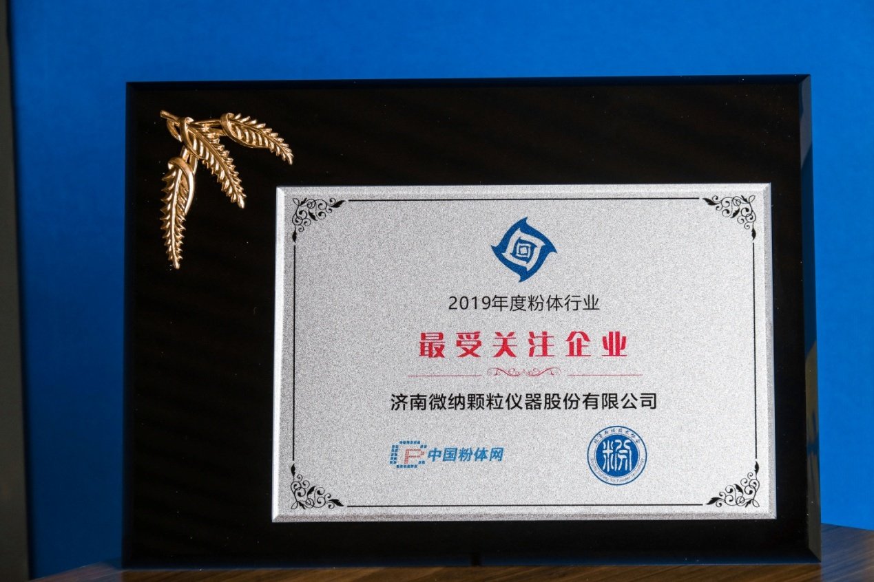 作為中國粉體網的老客戶,濟南微納顆粒儀器股份有限公司榮獲了2019粉體行業“最受關注企業”。本獎項旨在頒發給在2019年受到行業關注度較高的企業,濟南微納顆粒儀器股份有限公司作為顆粒測試儀器制造商當之無愧。
