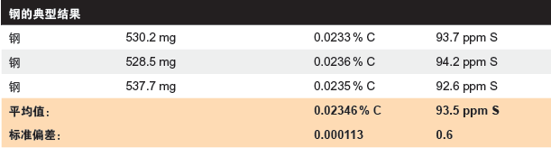 硫和碳含量是影響鋼特性的重要因素,如硬度、韌性、脆性、焊接和加工適應性。因此,測定鋼中碳硫含量是鋼鐵行業的常規檢測項目。一個典型的鋼樣品在感應爐里可以直接分析,同時結果的重現性也可以快速的得到。分析方法符合ISO 9556和ISO 4935標準。使用CS-800的高頻感應爐,各種樣品的碳和硫的含量都可以快速準確的測定。