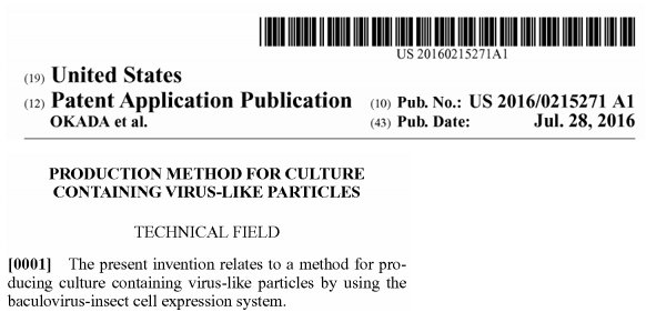 3、專利:《含有類病毒顆粒的培養方法》(專利號:US 2016/0215271 A1)