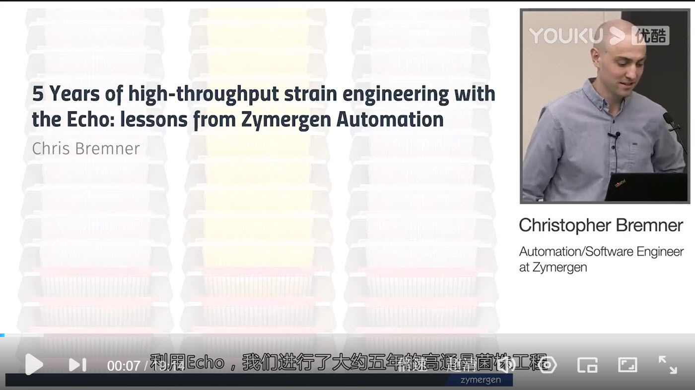 Zymergen公司自動化系統(tǒng)專家Christopher Bremner為我們分享了其利用Echo進行高通量工程菌改造的寶貴經(jīng)驗。一起來學習一下獨角獸公司是如何利用自動化設備進行合成生物學實驗的吧!
