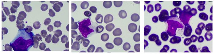 涂片結果如下:骨髓增生活躍,原始細胞比例不好,粒細胞比例減低,淋巴細胞比例升高,可見約 14.5% 的異淋(圖一)。