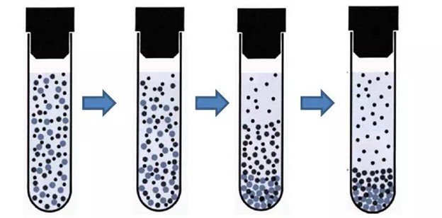 以上即是離心的主要原理,液體中的顆粒在重力的作用下以一定的速率向下移動(dòng),顆粒移動(dòng)的速率往往與顆粒的大小與密度相關(guān),這樣就出現(xiàn)了顆粒的沉降運(yùn)動(dòng)。當(dāng)然前提是顆粒的密度必須大于液體的密度。