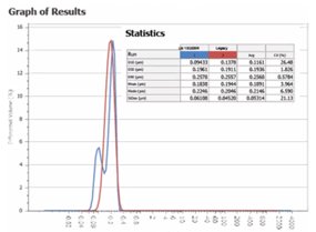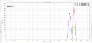 圖1:分布很窄的單峰,經常被誤以為正確結果,但實際上藍色雙峰才是正確的結果,這也是極容易被忽略的,為此2020版ISO13320 特別指出了這一點。高分辨率技術對于單分散樣品也至關重要。
