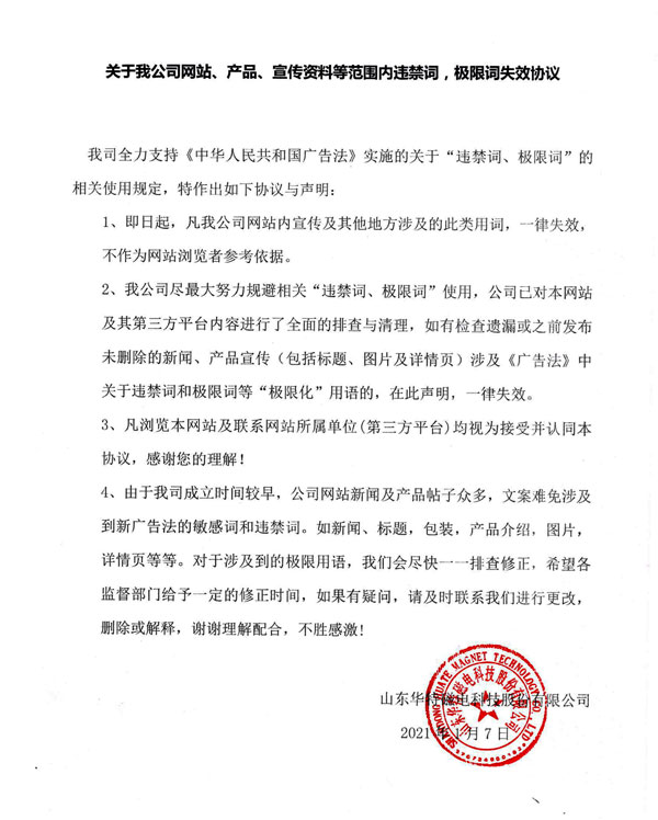 關于我公司網站、產品、宣傳資料等范圍內違禁詞,極限詞失效協(xié)議