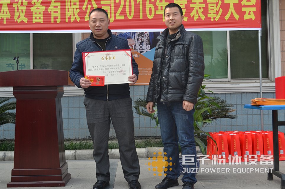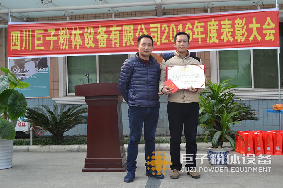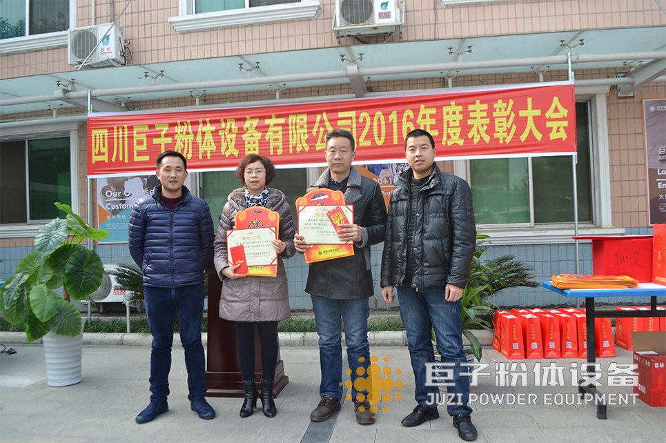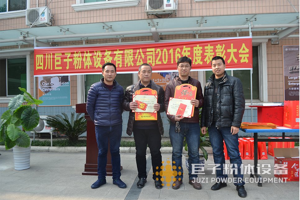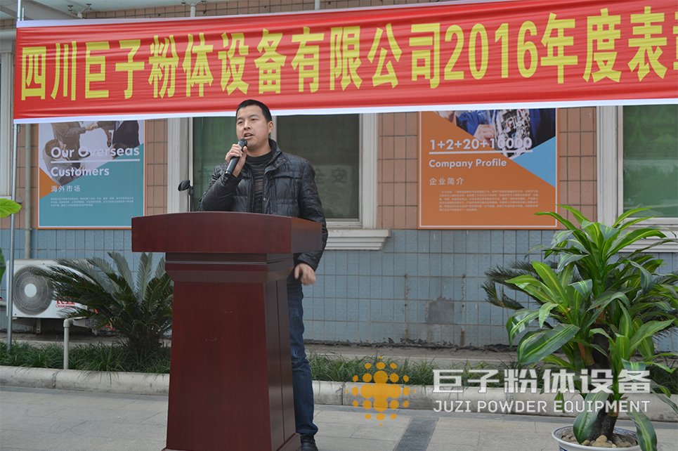 常務副總劉波、常務副總常永、采購經理董劍、廠長周仁兵、售后服務部胡林茂等優秀領導班子出席了此次年會并總結講話。會上,副董事長廖水泉先生,總經理白海先生,2016年度巨子優秀員工進行表彰和頒獎!