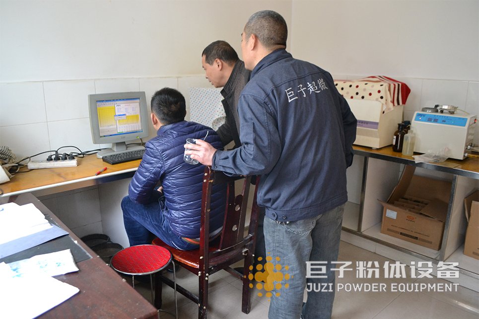 今天下午,四川巨子粉體設備有限公司的銷售總監(白總)為四川某公司客戶進行了石膏和滑石的超微粉碎分級實驗。因為石膏及滑石的物理特性,對其進行粉碎分級一般使用JZC分級式沖擊磨即機械超細粉碎。