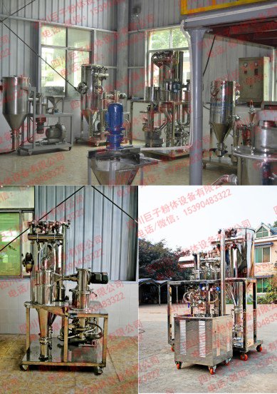 小型氣流粉碎機是由粉碎機,旋風分離器,脈沖除塵箱及風機等幾大部分組成,具有風選式、無篩、無網、粉碎粒度大小均勻等多種整體性能,生產過程連續進行。其利用活動齒盤和固定齒盤間的相對運動,或者氣體高速流動帶動物料,使物料經齒沖擊,摩擦及物料彼此間的沖擊而獲得粉碎,粉碎好的物料經旋轉離心機和風機的引力,進入旋風分離器出料,然后經關風機,粉塵進入脈沖除塵箱,通過過濾筒和回收,粉碎細度用篩網調節。整機按GMP標準設計,全部用不銹鋼材料制作,生產的時候無粉塵飛揚。