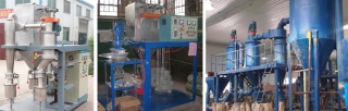 5、環形分級區內的氣流屬于自由渦(半自由渦),可去除較大顆粒,起到預分級和使物料進一步分散、混合均勻的作用,渦輪分級區內的氣流屬于強制渦,通過調整分級機轉速可控制分級粒徑的大小,細粉的收集采用與分級機分開安裝的旋風收集器和脈沖袋式除塵器,收集效率高。