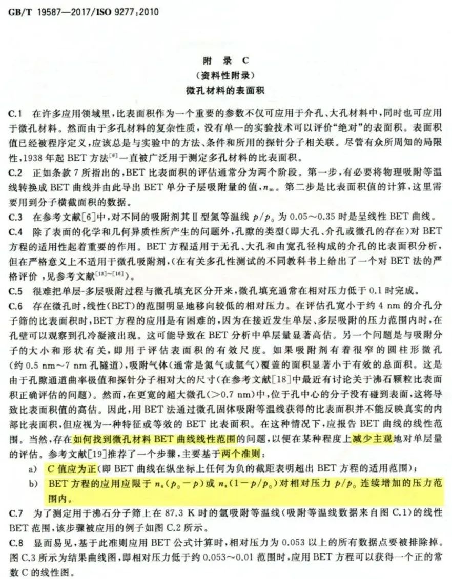 國際標(biāo)準(zhǔn)ISO 9277:2010及其等同翻譯的GB 19587-2017的附錄C(截圖摘錄見文末)給出了建議,但實際操作時,僅依據(jù)該資料,分析人員僅能得出取點范圍的上限,仍然無法得出合理的取點范圍。