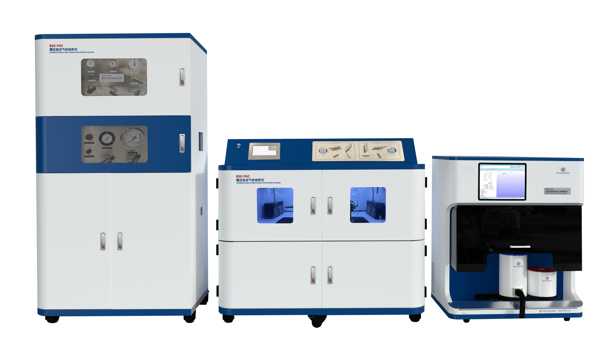 BSD-PHE 全自動高高壓恒壓氣體吸附儀 | ◆ CO?高壓吸附脫附等溫線; ◆ CO?高壓恒壓吸附動力學研究; ◆ 不同溫度、壓力下的CO?儲量研究; ◆ “脫氣→吸附→脫附”全自動循環壽命評價 |