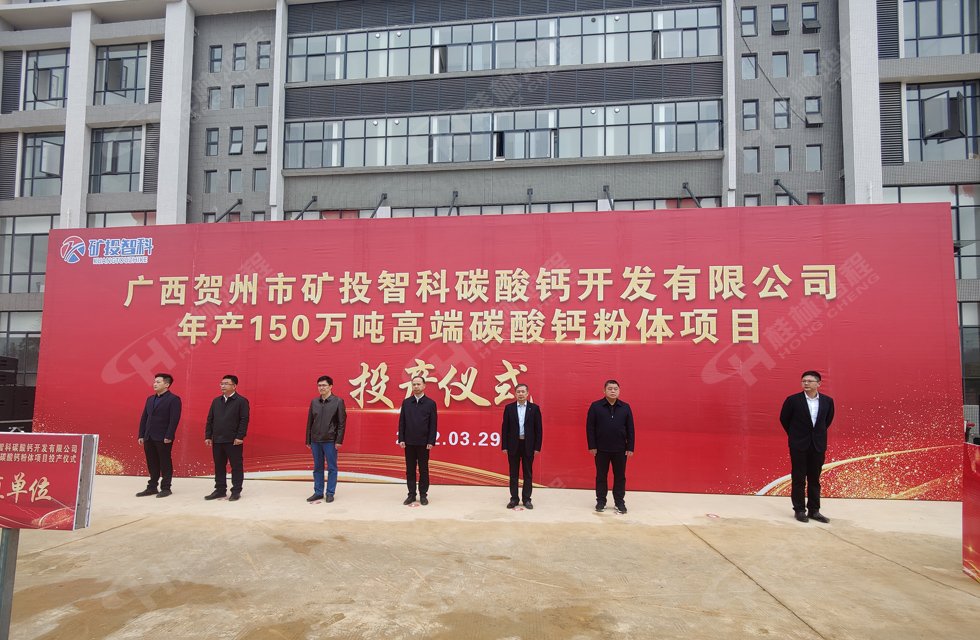 賀江兩岸春意濃,百花爭艷競芬芳。3月29日上午,賀州礦投智科年產150萬噸高端碳酸鈣粉體項目竣工投產,賀州市委常委、副市長劉洪軍、市人大常委會副主任陳翼明、市人民政府副秘書長馬鵬翔、市國資委主任張建斌、礦投集團董事長朱義芳等領導嘉賓出席本次活動,桂林鴻程董事長容棟國應邀出席開工儀式。