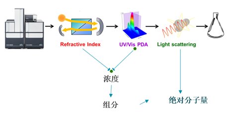 樣品經過分離洗脫后,使用共聚物分析方法確定樣品兩種不同組分的濃度和分子量。計算方法如下: