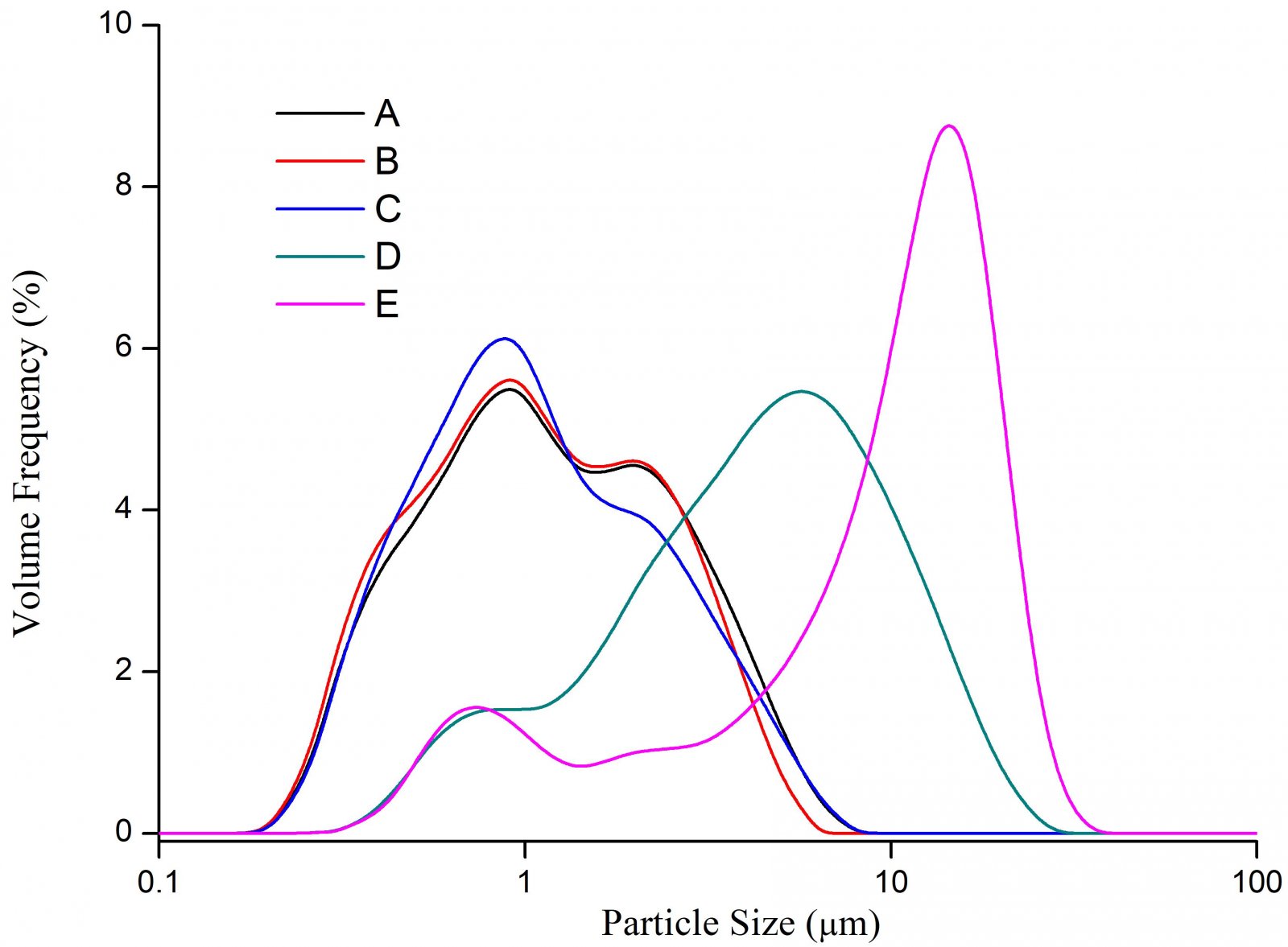 常用的鋰離子電池正極材料有磷酸鐵鋰、鈷酸鋰、碳酸鋰和高鎳三元材料等,它們的粒徑分布是影響電池性能的關鍵因素,其粒度分布可優化鋰電池的能量和功率。百特實驗室采用Bettersize2600激光粒度儀檢測了5種磷酸鐵鋰樣品,它們的粒度分布如下: