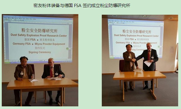 ● 密友粉體裝備粉塵安全防爆研究所由江蘇密友粉體新裝備制造有限公司、德國(guó)(FSA)系統(tǒng)安全及工業(yè)醫(yī)學(xué)研究中心組建成立。