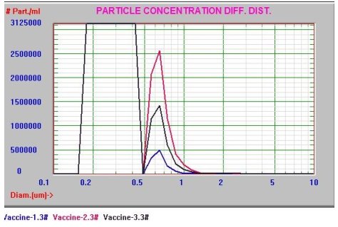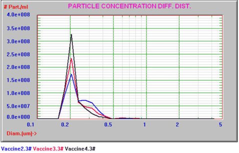 在圖1中,顯示了種群在200nm處的疫苗的分析。 在約300nm處清晰可見聚集。