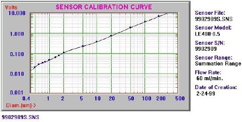 · 下面的圖2顯示了LE400-05SE傳感器(標(biāo)稱尺寸范圍為0.5-400μm)的典型響應(yīng)(校準(zhǔn)曲線),它結(jié)合了消光(LE)和光散射(LS)響應(yīng)。