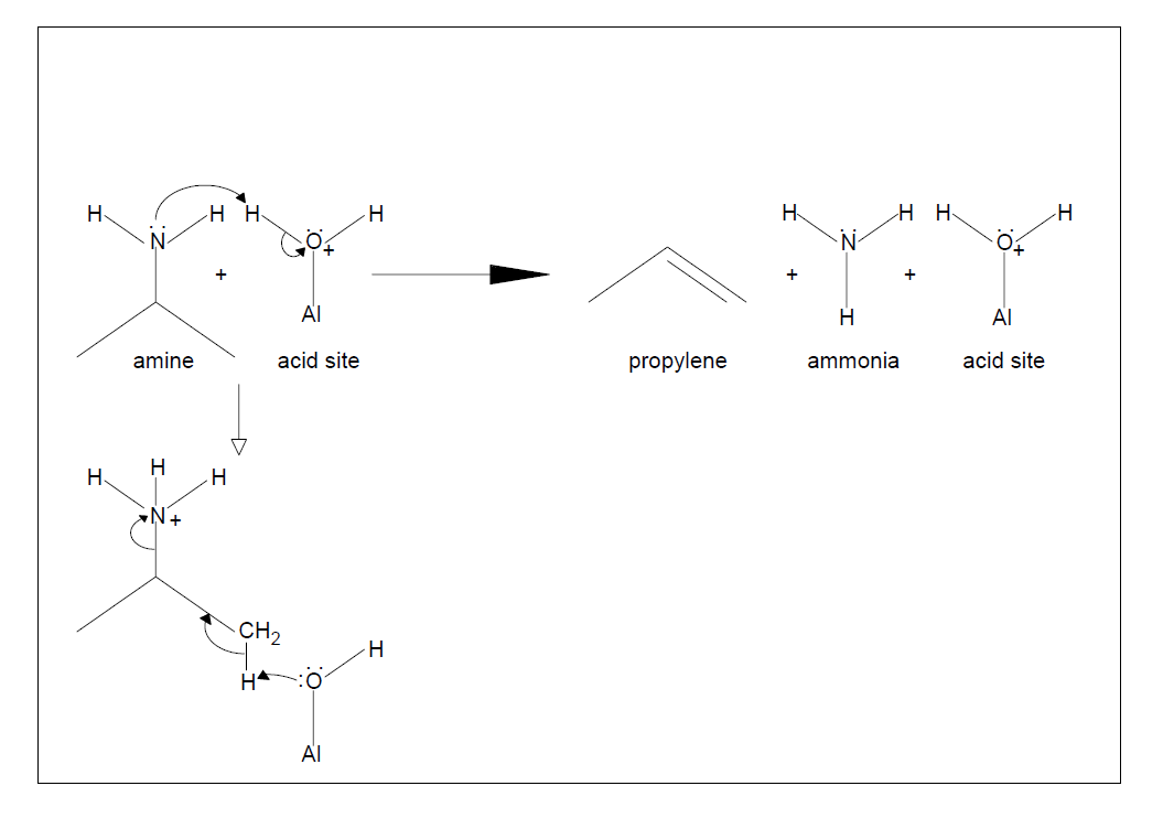 圖1.胺與酸位點反應,通過類似霍夫曼消除反應分解成丙烯和氨