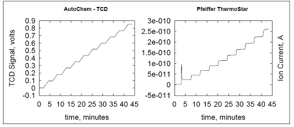Figure1.Hydrogen calibration using Micromeritics’ AutoChem and the Pfeiffer ThermoStarmass spectrometer.