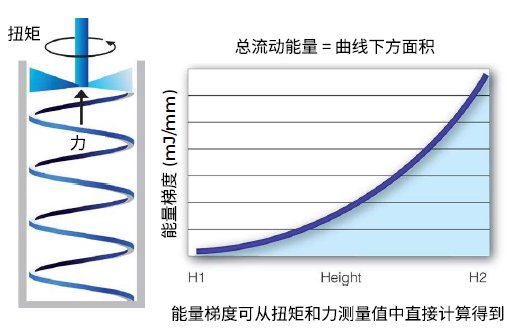 在本研究中,使用動態方法測量粉體樣品結塊前后的流動能量,以量化流動性的改變。流動能量通過具有專利的測量原理確定,測量特殊形狀的槳葉沿著預設路徑在精確定量的粉體中運動的阻力,得到的扭矩和力的測量值被轉換成流動能量[1]。