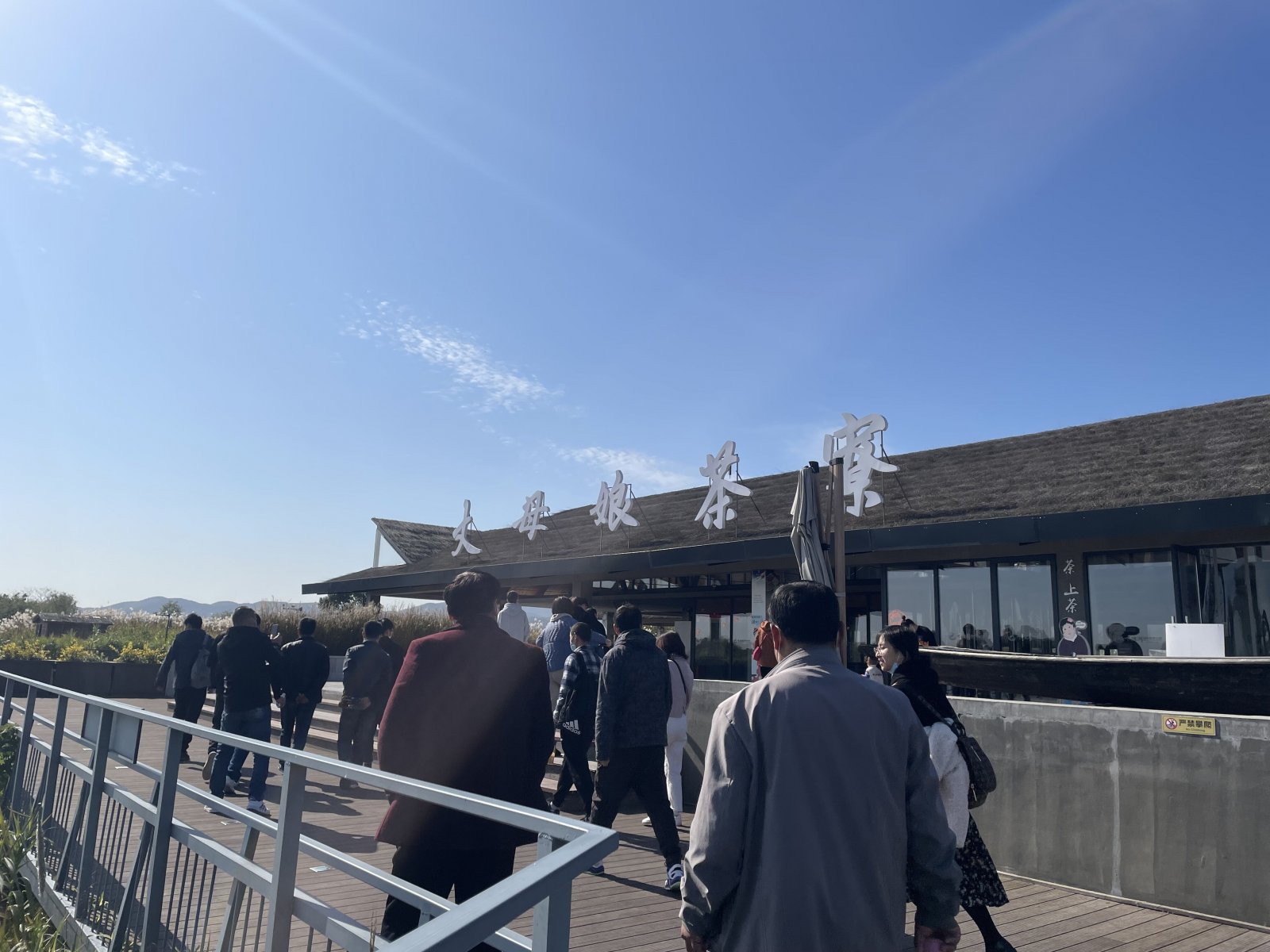 來到第一個島,下了船登上了高高的瞭望亭,將回折的木橋、蔥蘢的蘆葦,以及湖泊流水盡收眼底;途經(jīng)“丈母娘茶寮”,聆聽丈母娘和女婿的故事。