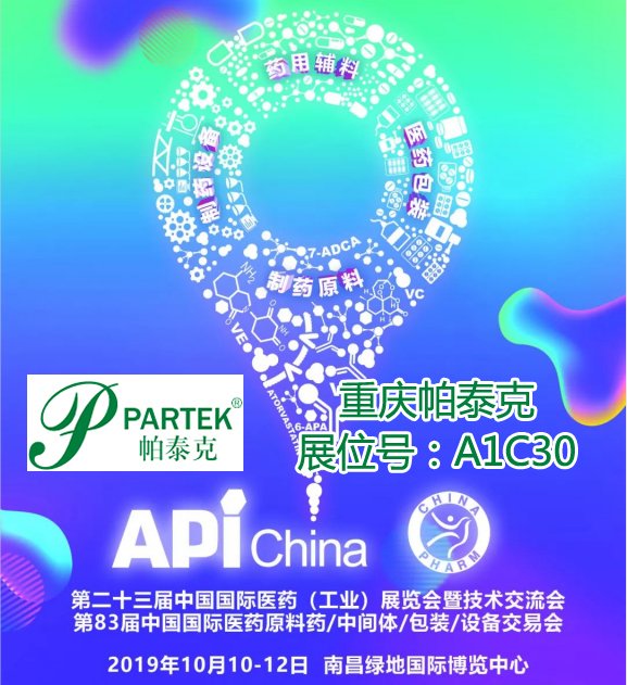 API China2019第83屆中國國際醫藥原料、中間體、包裝、設備交易會將于2019年10月10-12日在南昌綠地國際博覽中心舉行。粉體工程專家--重慶帕泰克機械設備制造有限公司應邀亮相此次盛會。