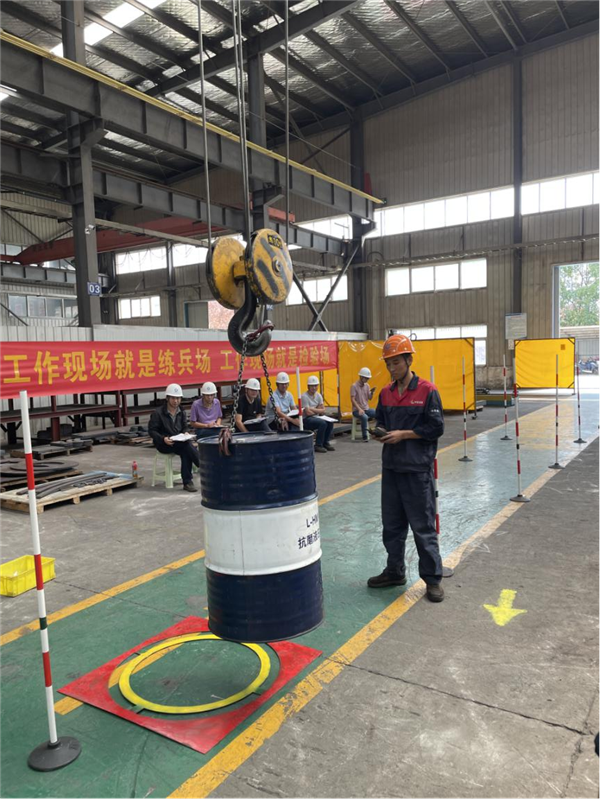 ??單梁行車組競賽項目,更突出了遵守安全操作規程的重要性。競賽內容涵蓋了一些日常工作中非常重要,又很容易忽視的有關行車操作的安全問題。行車實操比賽要求每個選手按規定完成每個動作,比如:檢查限位,試吊,穿越障礙物,跨越障礙物,吊鉤及遙控器歸位等。這不僅是一次技能操作大比拼,也是一次全員安全教育。