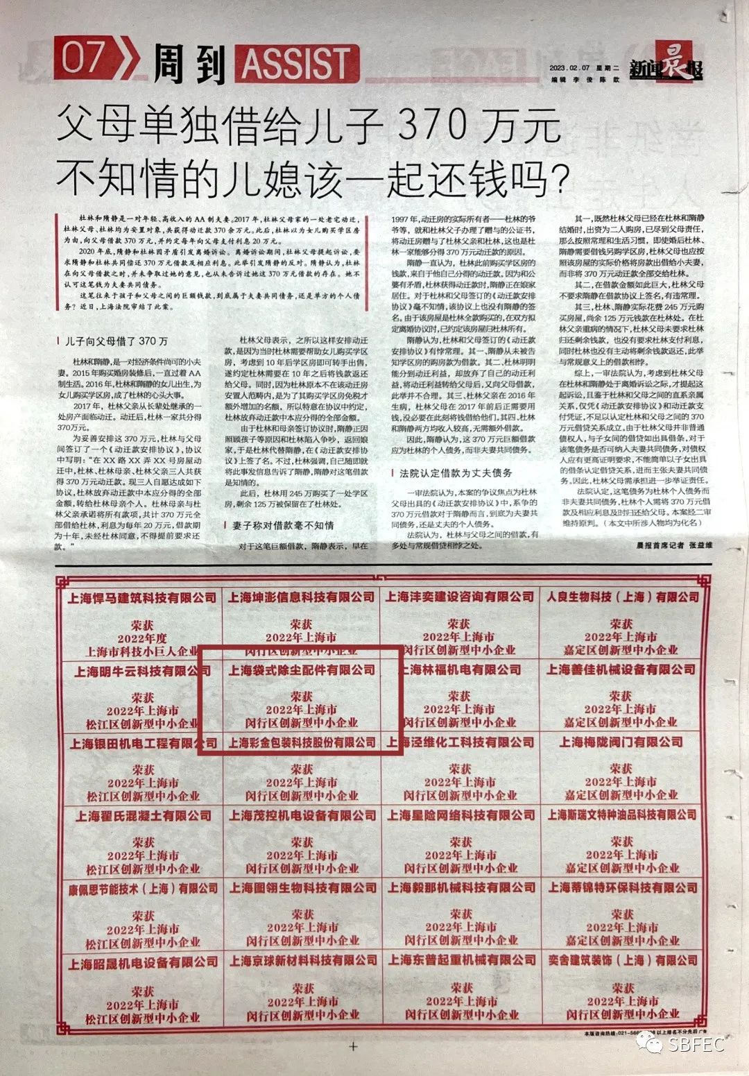 根據(jù)《上海市優(yōu)質(zhì)中小企業(yè)梯度培育管理實(shí)施細(xì)則》要求,上海市經(jīng)濟(jì)和信息化委員會(huì)開(kāi)展了2022年創(chuàng)新型中小企業(yè)評(píng)價(jià)工作,上海袋式除塵配件有限公司獲此殊榮,并刊登于《新聞晨報(bào)》榮譽(yù)專(zhuān)欄。