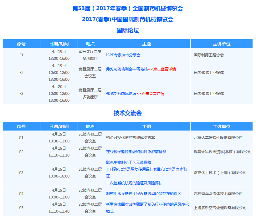 第53屆(2017年春季)全國制藥機(jī)械博覽會(huì)、2017(春季)中國國際制藥機(jī)械博覽會(huì)國際論壇同期舉行。