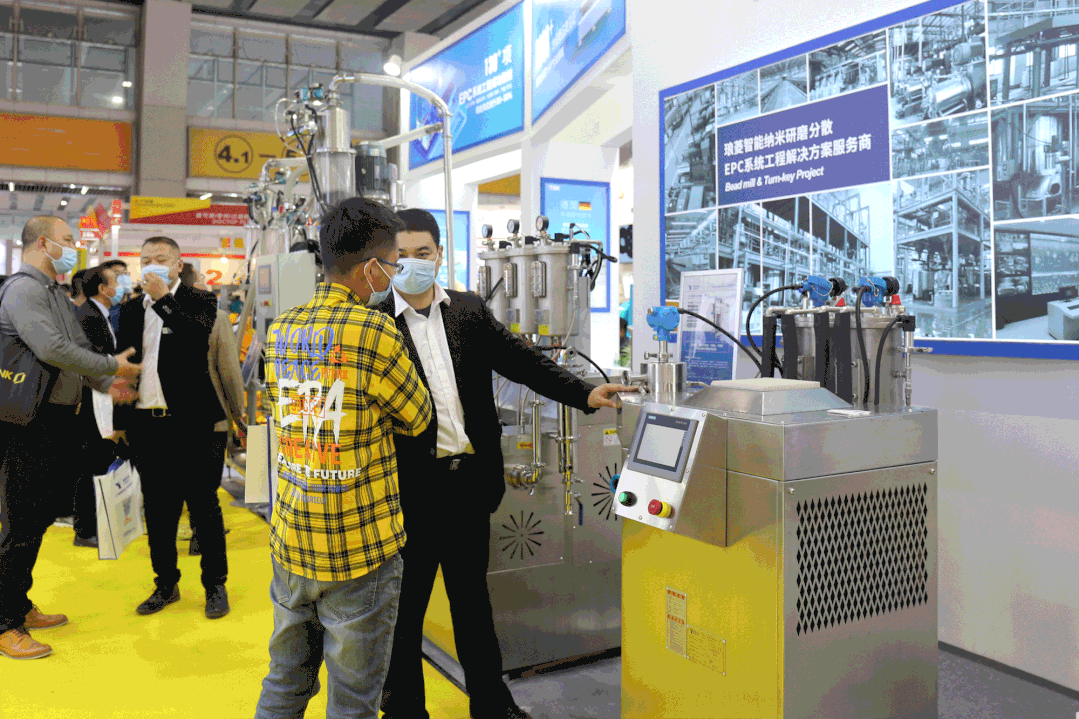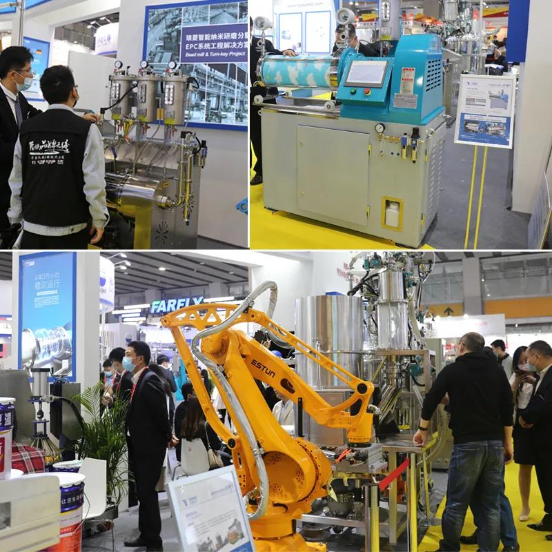 此次展出的有實驗室機型及量產機型,涵蓋納米級砂磨機NT系列、微米級砂磨機LDM系列,以及高速分散機、自動投粉系統、自動化灌裝產線等。