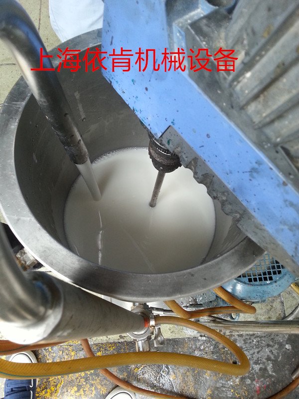 凹凸棒土漿料流動性很差,類似于果凍狀。在用過多家公司的分散機和砂磨機之后,依然難以分散均勻。最后偶然的機會與兩位清華博士進行了詳細的溝通,決定采用研磨分散機進行分散,根據(jù)現(xiàn)場實驗,兩位博士通過對研磨分散后凹凸棒土漿料的狀態(tài)分析,漿料的狀態(tài)由原先的果凍狀,最終變成了流動性很好的液體狀漿料。清華博士解釋為漿料內(nèi)的物料粒徑研磨的越細漿料的流動性會越好。凹凸棒土漿料從果凍狀變成流動性良好的液體狀漿料,共研磨分散了5min,效率是相當高的。因為用傳統(tǒng)的砂磨機也好,雙行星攪拌也好,研磨分散的效率都很低,一小批料可能需要處理3-5小時才能勉強達到要求,會影響工廠生產(chǎn)的效率。