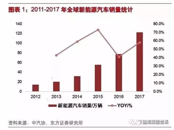 2017年全球新能源汽車銷量超過122.3萬輛,比2016年增長58%,推動全球新能源汽車銷量在全球汽車總銷量當中的占比首次突破1%。