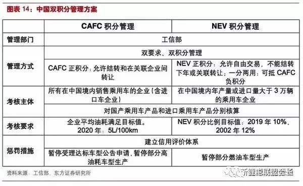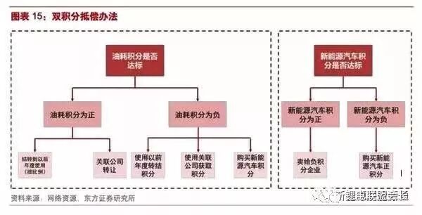 根據雙積分政策的實施方案,NEV正積分的企業可以通過交易新能源積分獲取額外收入,傳統車企面對積分不達標的懲罰壓力,也有動力向電動車轉型。
