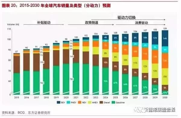 在此期間,汽油車和柴油車的份額將從93%下降到68%,柴油車的份額下降最快。