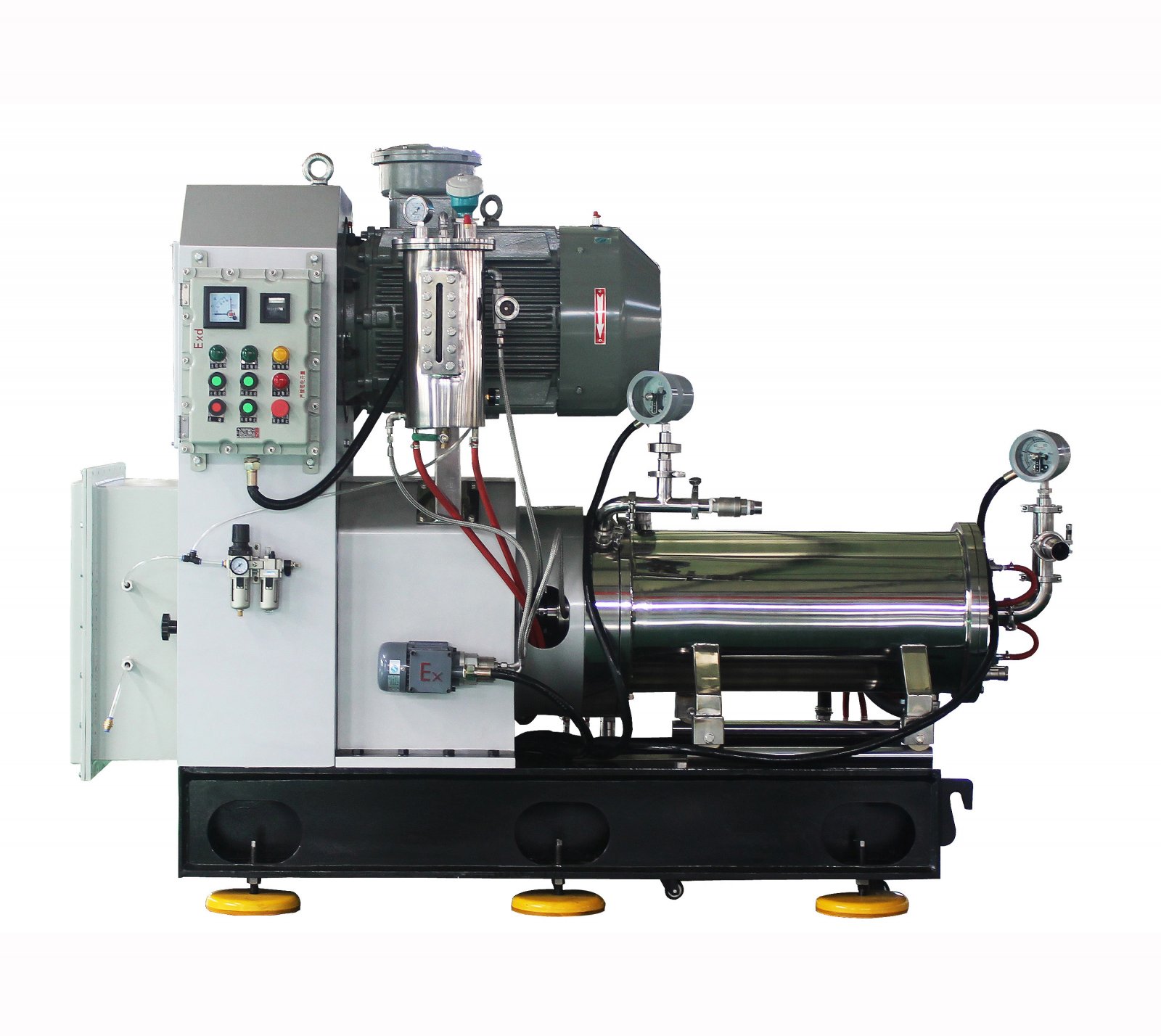 高耐磨研磨內筒及分散器可方便更換,材質有合金鋼、陶瓷、高分子、不銹鋼等多種選擇。螺旋式水循環通道、多部位冷卻水設置,可以充分散熱。產品還配備了全防爆按鈕操控和科學化的PLC觸屏操控,不僅方便操作,也可以最大程度的保障操作人員的安全。除此之外,進料壓力、出料溫度、機封潤滑油箱液位等多部位安全控制,讓下游客戶選購安心,操作無憂。