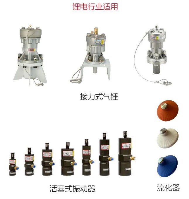愛科昇產業機械產品則采用敲擊、振動、直接噴射三種方式,通過氣、電驅動,實現防止粉體顆粒料的堵塞架橋、破拱助流的自動化。同時,我們致力于為客戶提供有效的破拱助流解決方案。在鋰電,化工,環保,食品,醫藥等行業被廣泛使用。