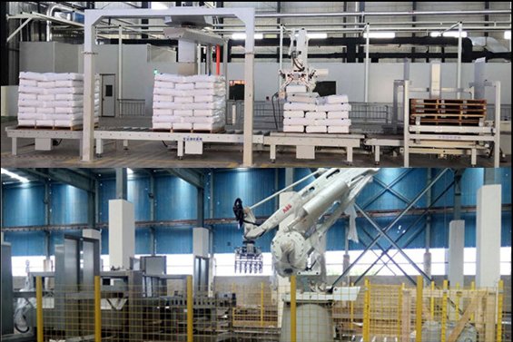 其中:全自動包裝碼垛線已經成功開發自由落料,水平螺旋給料,垂直螺旋給料等多種給料形式,實現從包裝袋自動上袋到自動碼垛的全套無人化操作。