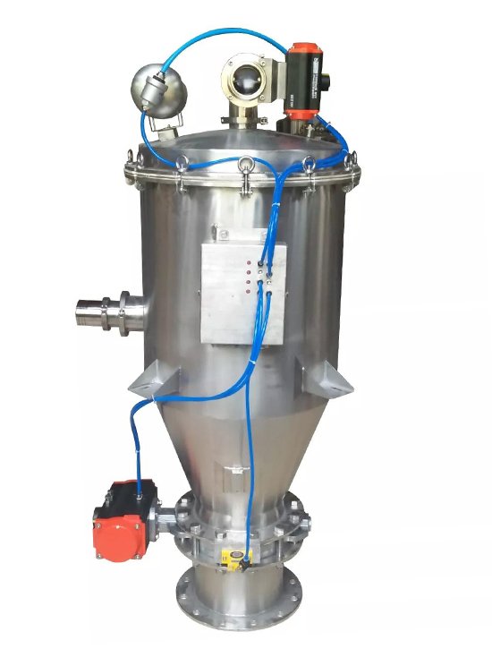 一種借助于真空吸力來傳送顆粒和粉末狀物料的無塵密閉管道輸送設備,利用真空與環境空間的氣壓差,形成管道內氣體流動,帶動粉狀物料運動,從而完成粉體的輸送的設備。特別是不受長、短距離的限制。同時,真空上料機能夠降低人工勞動強度,提高工作效率,是絕大 部分粉體物料輸送方式的首選。