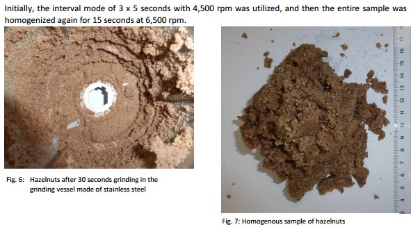 我們用P11磨了800g的榛子樣品,研磨結果滿足后續檢測的需要。