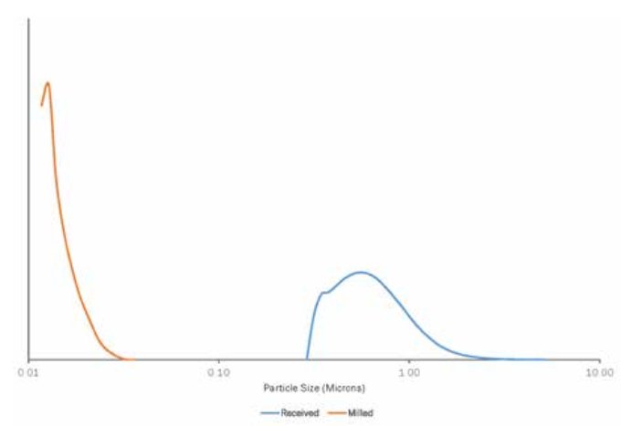 從市面上購買的陶瓷材料通常粒徑分布范圍很大,不能很好的滿足研發的需求。為了解決這樣的一個問題,我們通過行星式球磨機和振動研磨的探索,也開發出了能夠很好降低D50粒徑和產生完美的粒徑分布,但是我們為了進一步的達到理想的粒徑要求,經過幾年的科研攻關,我們開發出了PULVERISETTE7premium line機型。她可以達到更小的粒徑分布和更統一的粒徑范圍,可以實現納米級的研磨。在實驗室水平上實現超細研磨。