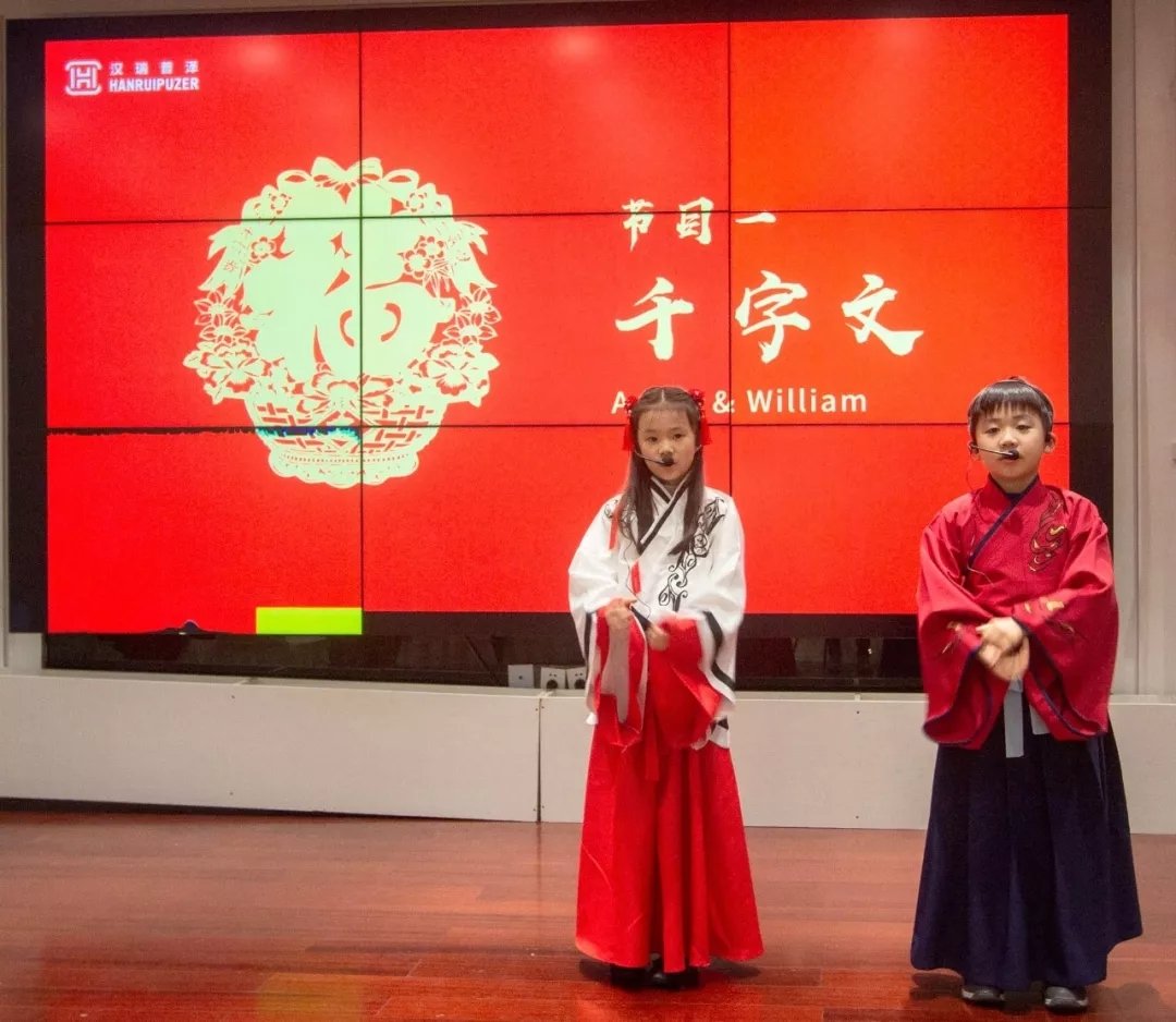 年會中,大家一起歡歌載舞,盡顯漢瑞普澤員工多才多藝。少年強則國強,中華文化博大精深,我們身為中華兒女而驕傲。年會伊始,兩位可愛的小寶貝(岳董的女兒及其同學(xué))為大家演繹了《千字文》,以歌舞形式演繹了中華民族有關(guān)自然、社會、歷史、教育、倫理等千年文化的發(fā)展,讓我們領(lǐng)略了中華民族文字之美、歷史之美。
