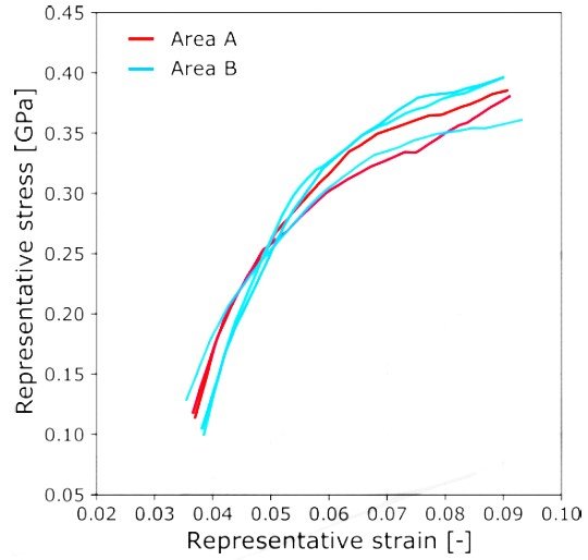 圖4:對比距離焊縫近的區域A和距離焊縫2mm處區域B的應力應變行為