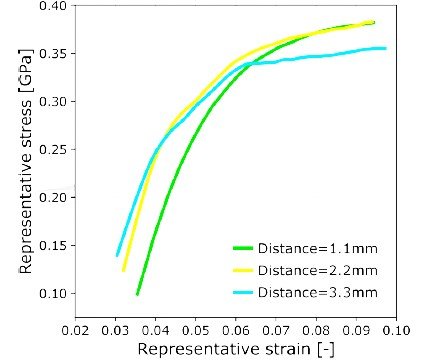 圖5的結果表明隨著距熔核距離的增加,所表現出的應力應變行為大致一樣,僅存在微小差異。在所有的三個區域的屈服應力大約為0.33 GPa(兩種基材中的屈服應力大約為0.27 GPa,圖中未顯示)。母材的硬度為0.8 GPa(T4合金)和1.1 GPa(T6合金)。所有三個區域(距焊縫熔核1.1 mm、2.2 mm和3.3 mm)的硬度均為1.1 GPa,這證實焊縫附近的彈塑性能并沒有發生顯著變化。