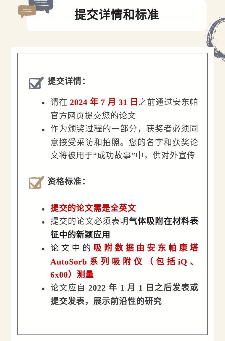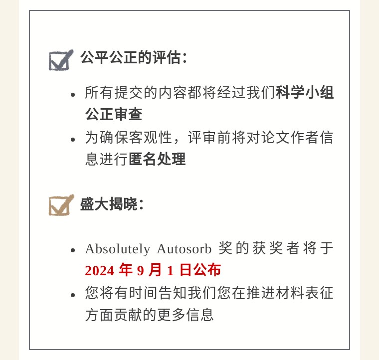 您是否處于利用氣體吸附進行材料表征的突破性研究前沿?如果確實如此,則安東帕誠邀您參加著名的 Absolutely Autosorb 獎項,以表彰在這個充滿活力領域中最具創新性論文。