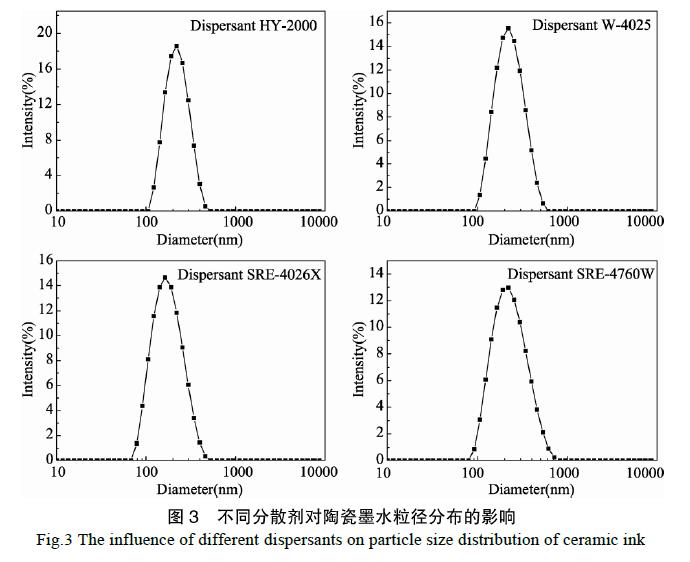 2.4分散劑陶瓷墨水粒度的影響