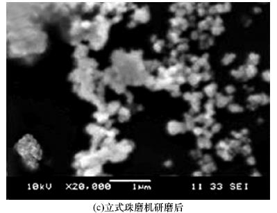 原始氧化鋯粉以及經(jīng)不同研磨設(shè)備研磨后氧化鋯粉體的SEM 照片見3。