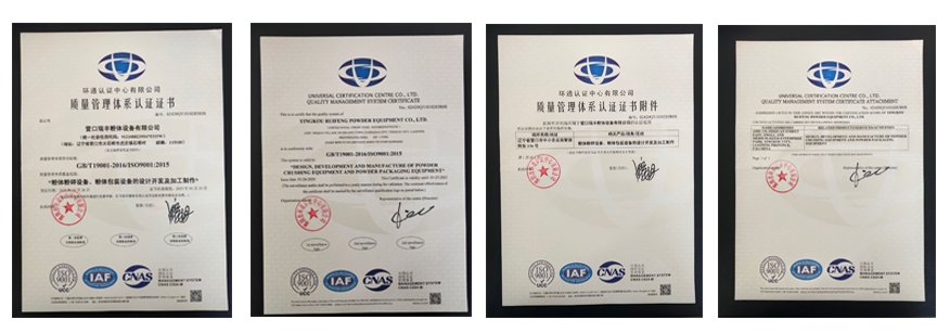 此次營口瑞豐粉體設備有限公司獲得ISO9001、IAF、CNAS質量管理體系認證,說明其產品質量生產合格,可以完全信任。標志著公司研發及生產體系的標準化、程序化、規范化更上一層樓,對公司的長遠發展具有重要意義。
