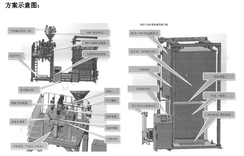客戶主要面臨的包裝問題是原始包裝精度不穩(wěn)定、袋子外部的粉塵污染較為嚴重、電子吊秤的復檢過程較為繁瑣、包裝車間的粉塵濃度較大、300L料倉的物料堵塞嚴重、物料包裝機在計量后的袋內(nèi)含氣量過大,需要進行二次拆包排氣,增加了勞動強度、包裝機的碼垛對高度有要求,需要通過人為調(diào)整來滿足條件、包裝袋的凈重每個都有差異,差距可達 200g,客戶是根據(jù)總重(袋子重量和物料凈重之和)來確定重量標準的、需要自動供應托板、托板上方需要放置一張紙皮、真空封口機可以進行測試,以驗證是否能通過真空封口機實現(xiàn)袋子物料高度的保證、噸包需要兩套、所有內(nèi)、外設備都要避免使用銅、鐵、鋅等金屬物品。