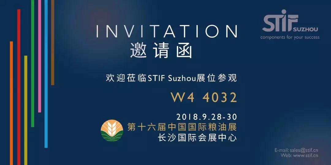 “第十六屆中國國際糧油產品及設備技術展示交易會” 將于2018年9月28-30日在長沙國際會展中心舉辦,斯緹福機械(蘇州)有限公司(股票代碼:691677)應邀參展。