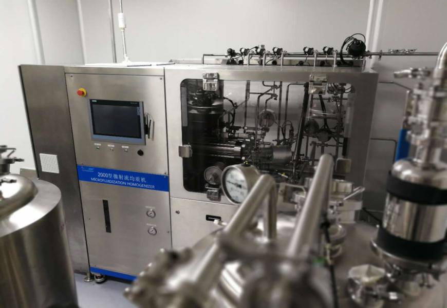 微射流均質機在制藥行業主要應用于納米載藥脂肪乳、納米脂質體、微納米混懸液的均質與分散。部分研發的項目已經由實驗室階段升到生產階段,同時也面對設備是否可以實現中試到大型量產的轉換,而且隨著法規的提高生產過程是否能夠滿足無菌生產至關重要。
