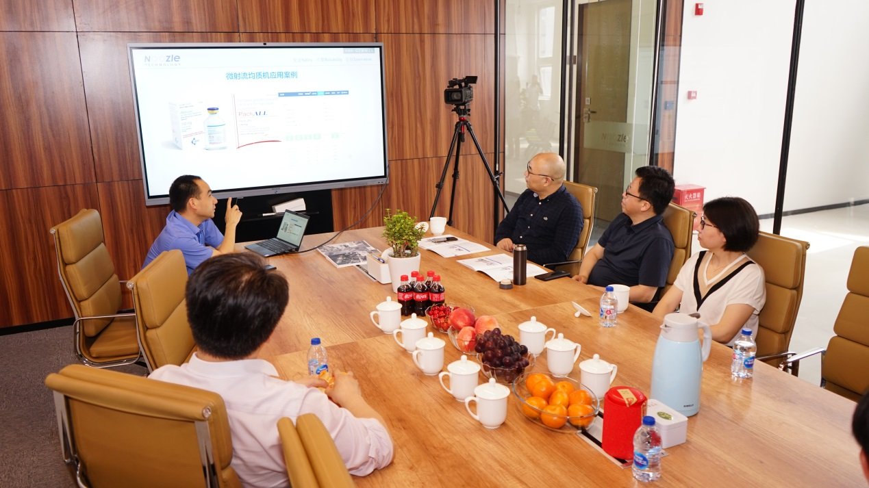 諾澤流體科技總經(jīng)理張鋒為嘉賓們先介紹公司兩大核心產(chǎn)品,微射流均質(zhì)機和超微粉氣流粉碎機應(yīng)用成果,后陪同嘉賓一起參觀技術(shù)中心。